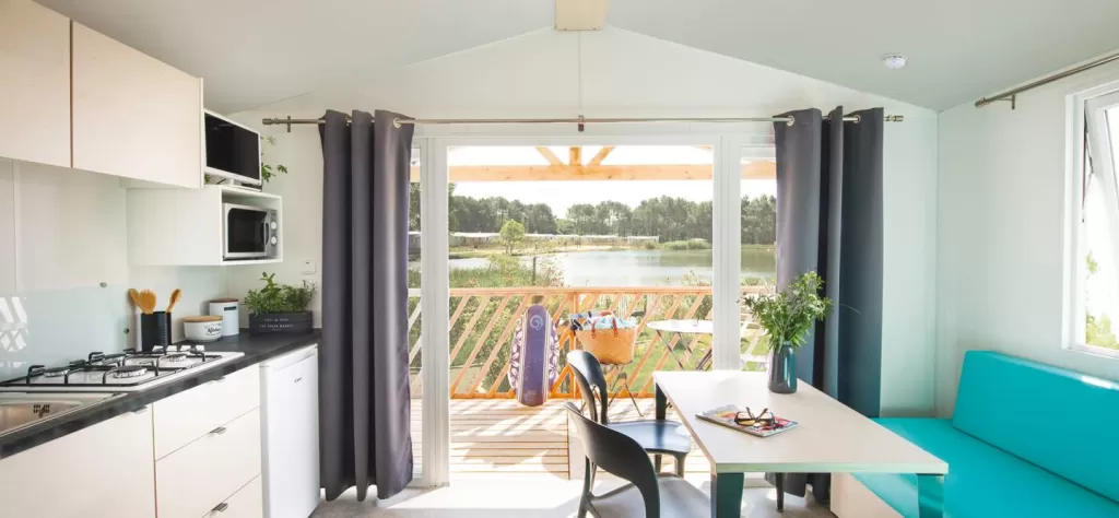 Séjournez au Camping 3 étoiles Paradis des Dombes, à quelques minutes de Villars les Dombes et du parc des oiseaux, dans l'un de nos mobil homes spacieux et lumineux avec terrasse couverte.
