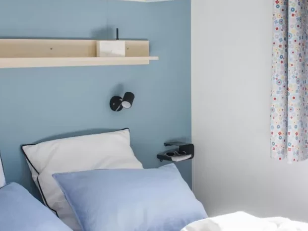 - Une chambre avec1 lit double (140x190), grande penderie hôtelière, liseuses orientables, rideau occultant.