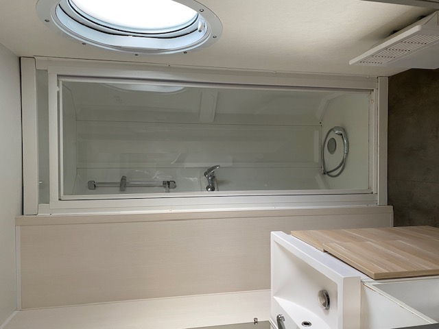 - Réfrigérateur, plaque de cuisson gaz 2 feux, micro-ondes, vaisselle.